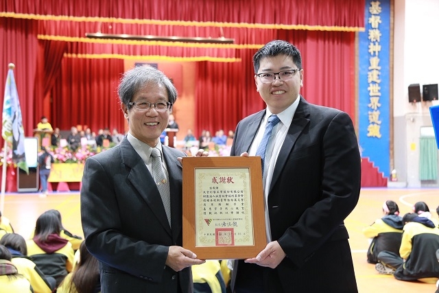 誠萱基金會黃執行秘書(右)及內思高工湯校長(左)