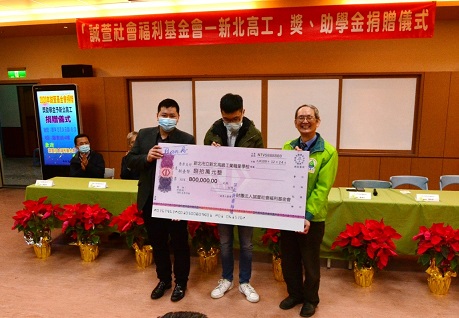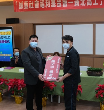 「誠萱社會福利基金會」2020年度再度捐贈獎助學金予新北高工以幫助弱勢及表現優異的學生,已連續六