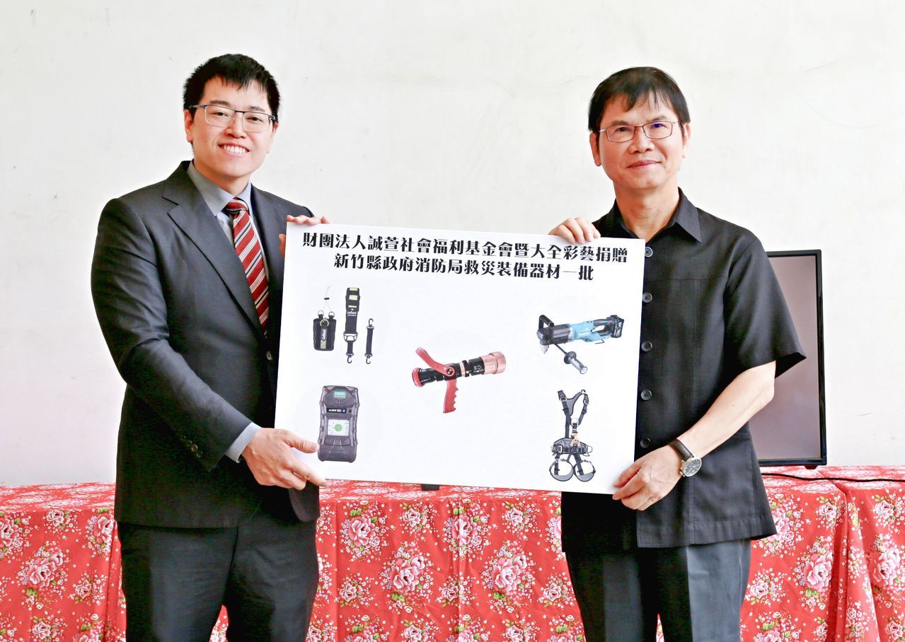 新竹縣消防局長陳中振表示,誠萱基金會、大全彩藝的公益善舉,為消防弟兄增添戰力與安全。誠萱基金會