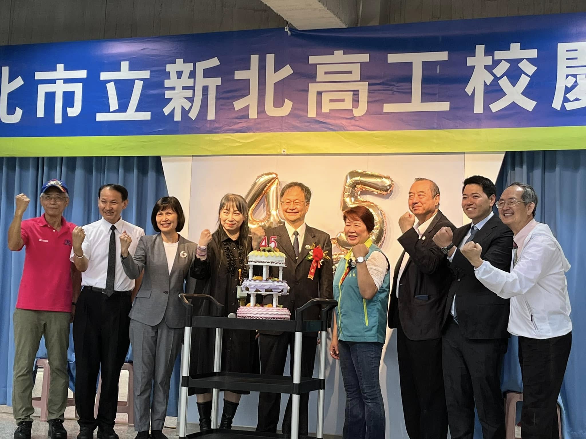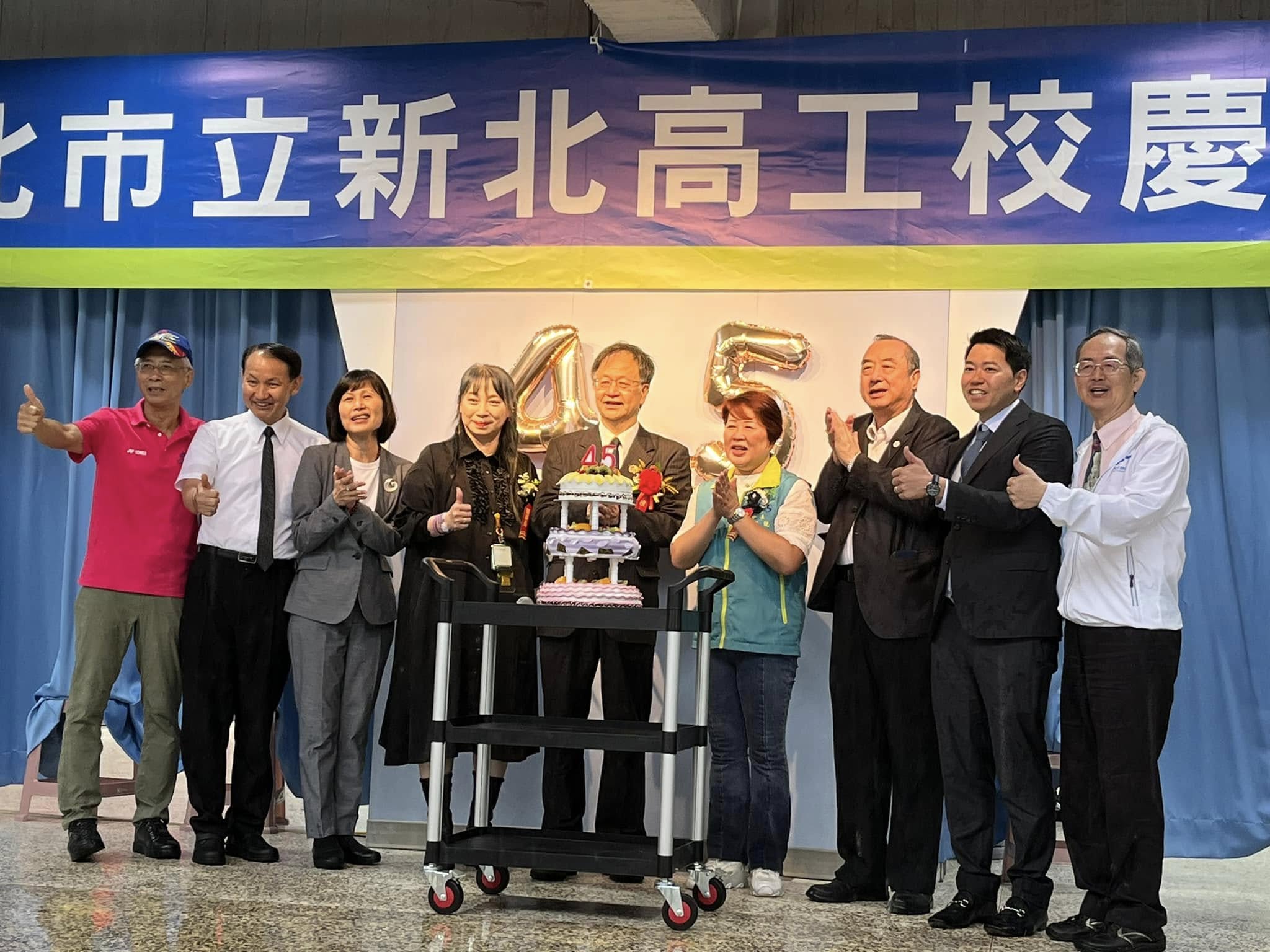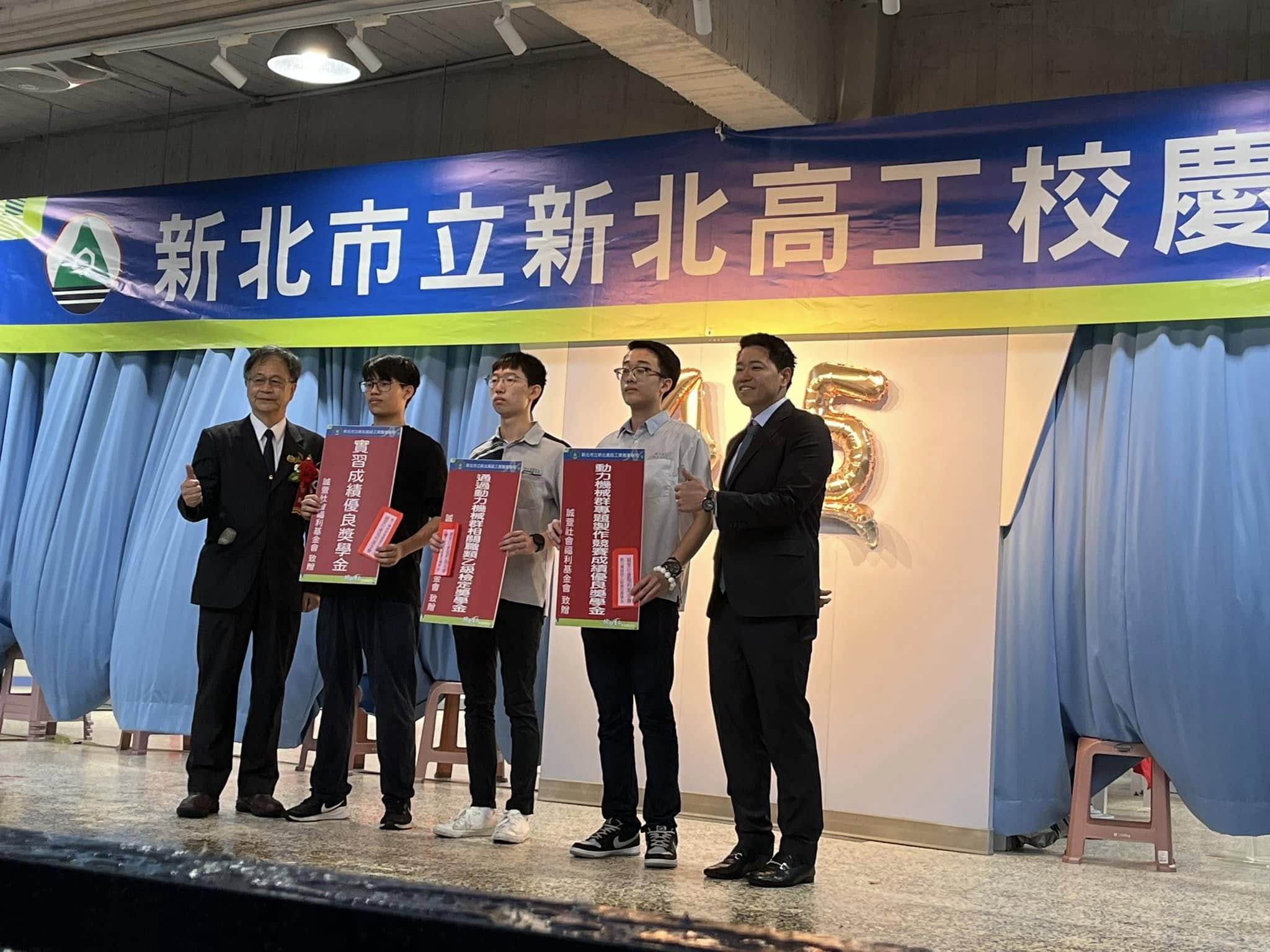 新北高工45週年校慶 首頁 最新消息 最新消息 新北高工45週年校慶 5/10(六)上午,大全彩藝 關係公益團體「誠萱社會福利基金會」的黃執行長及張董事(大全彩藝總經理)出席新北高工 45週年校慶, 並由執行長代表基金會上台頒發奬助學金予成績優異的學生們。